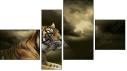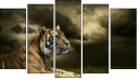 Tavla - Tiger looking and sitting under dramatic sky with clouds
